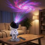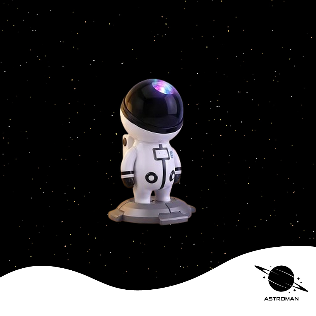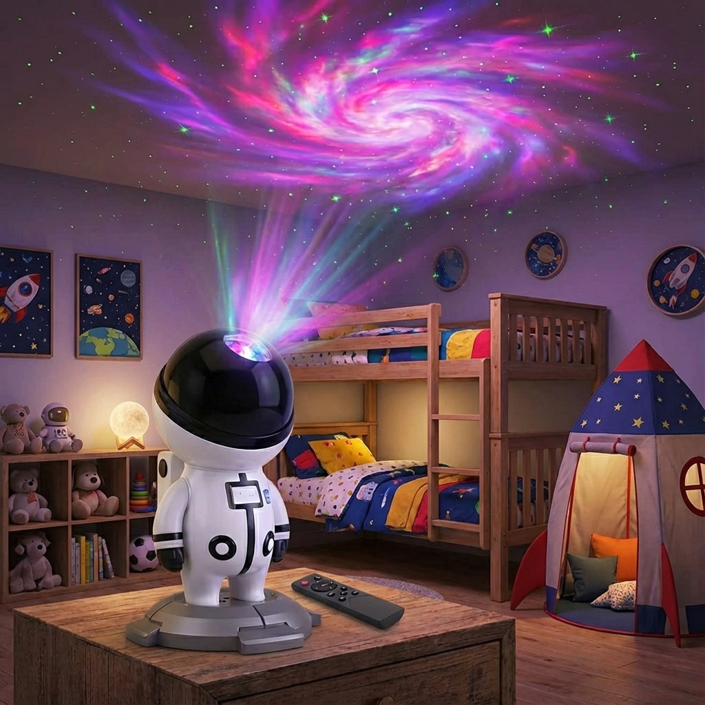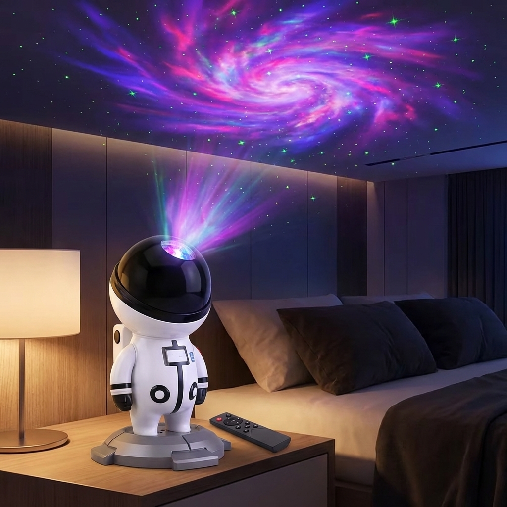 ასტრონავტის ფორმის პროექტორი, რამდენიმე ფერის ეფექტით. ნისლეულების სტილის ნათებით