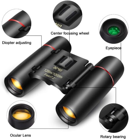 Foreseen-ის ბრენდის სამოყვარულო ბინოკლი, კომპაქტური, კარგი ხარისხის გამოსახულებით. მოჰყვება ყელზე ჩამოსაკიდეებლი და პატარა ჩანთა.