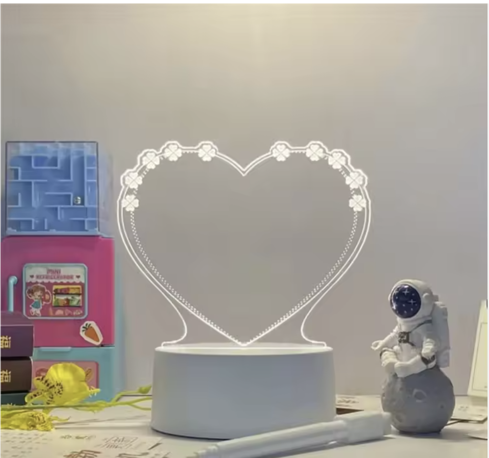 გულის ფორმის სანათი, მოჰყვება კალამი რომლითაც შეგიძლიათ მარტივად დახატოთ და წაშალოთ ნებისმიერი რამ.