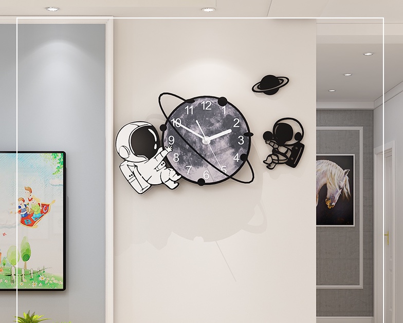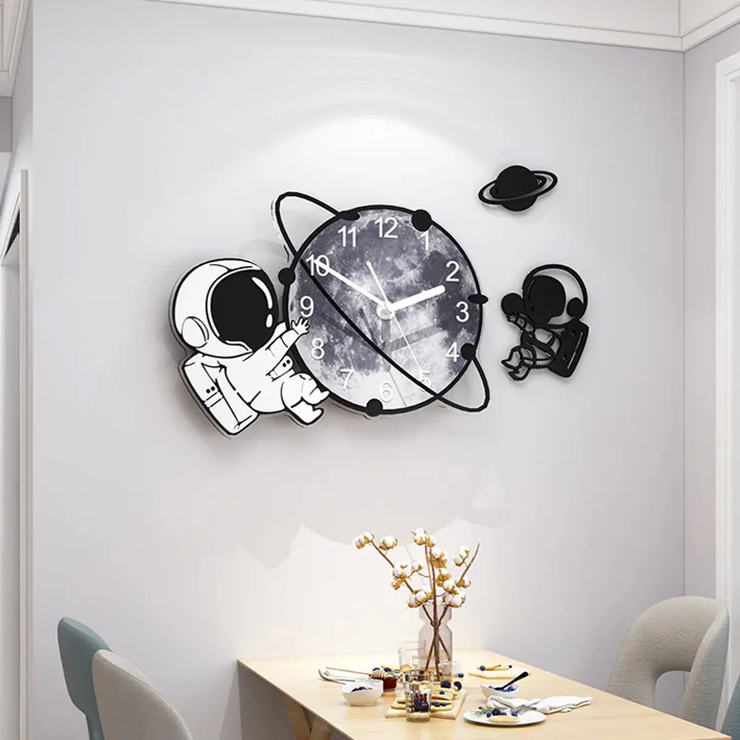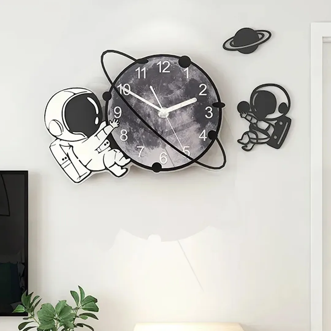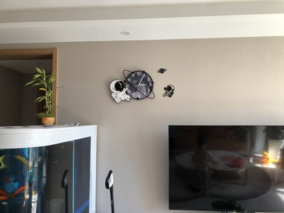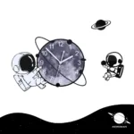 კედლის საათი, სატურნის და კოსმონავტის ორნამენტებით.