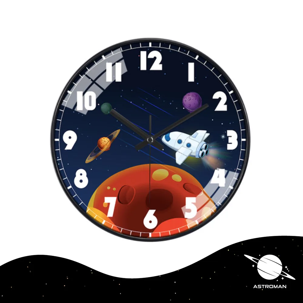 კოსმოსური კედლის საათი, მარსის და რაკეტის გამოსახულებით