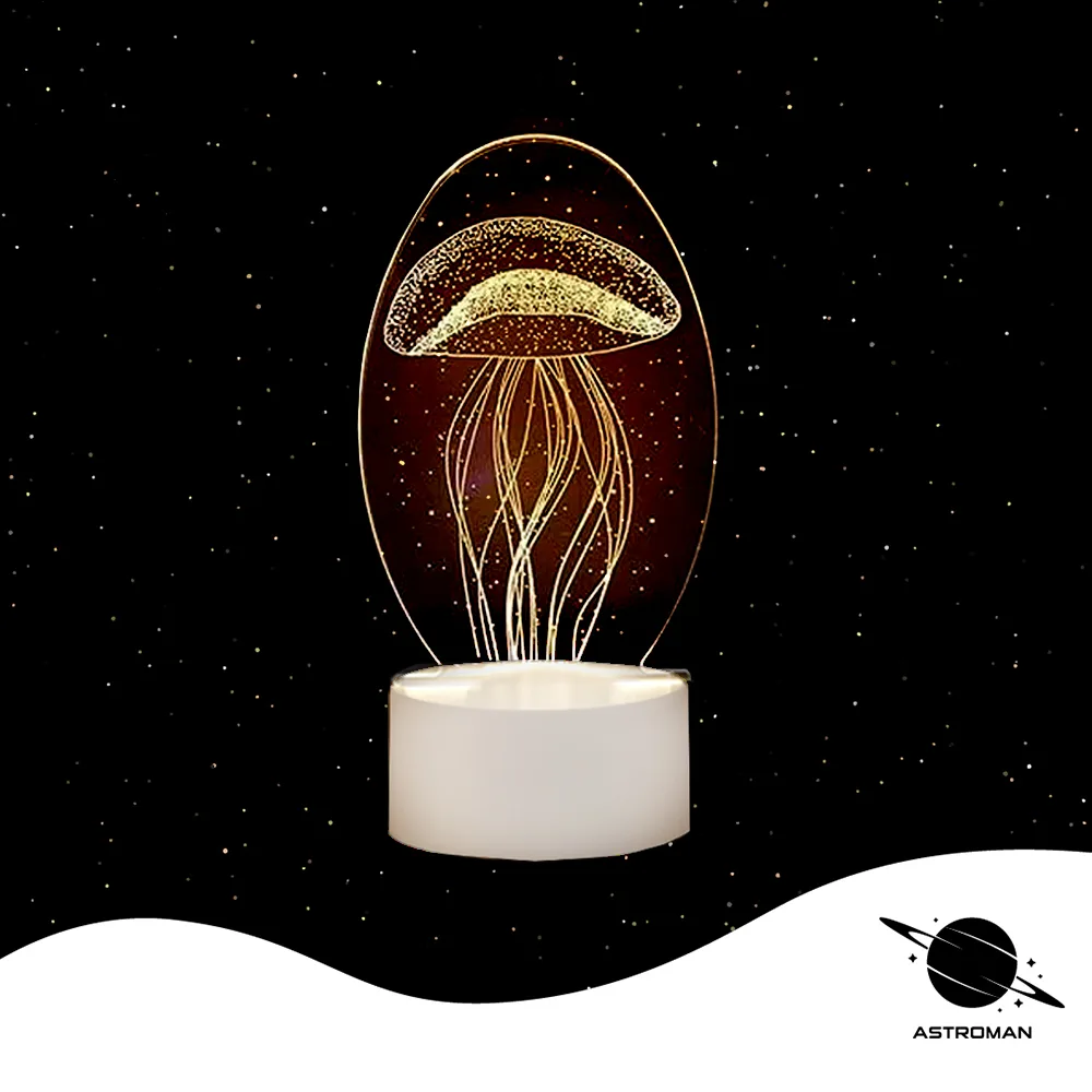 მედუზას ფორმის 2დ სანათი, აქვს ორი ფერი; ყვითელი და თეთრი.