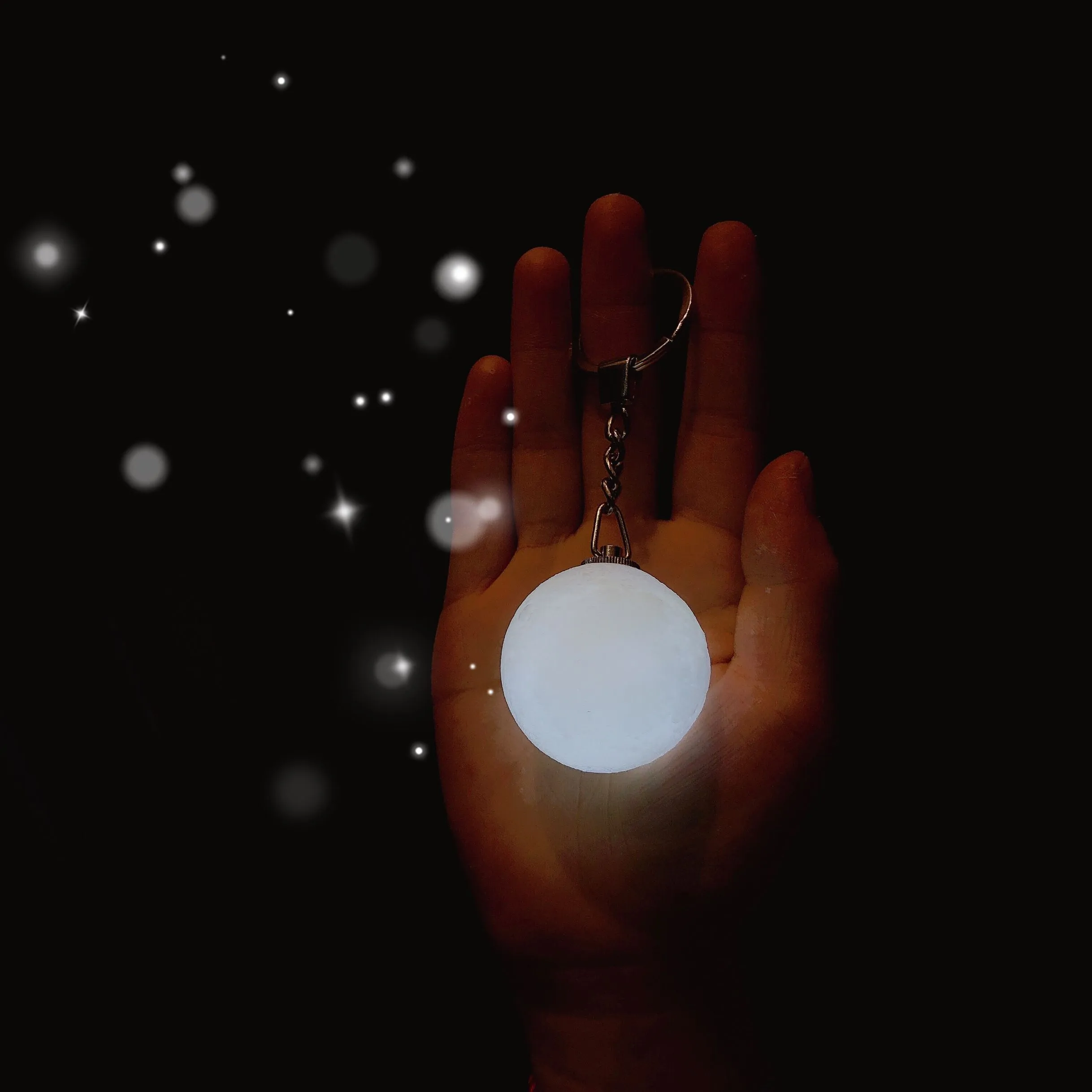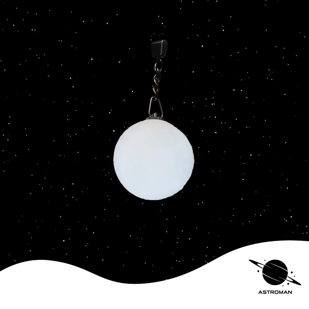 მთვარის ბრელოკი დამზადებულია 3დ პრინტით, ნათება ირთვება თავსახურის დატრიალებით