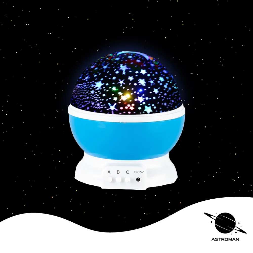 ვარსკვლავების პროექტორი მუშაობს ელემენტებზე ან უსბ სადენზე. იდეალურია ბავშვის ოთახისთვის, აქვს დამამშვიდებელი ეფექტი.
