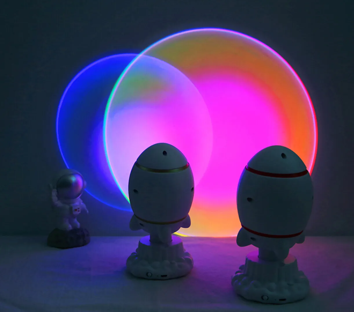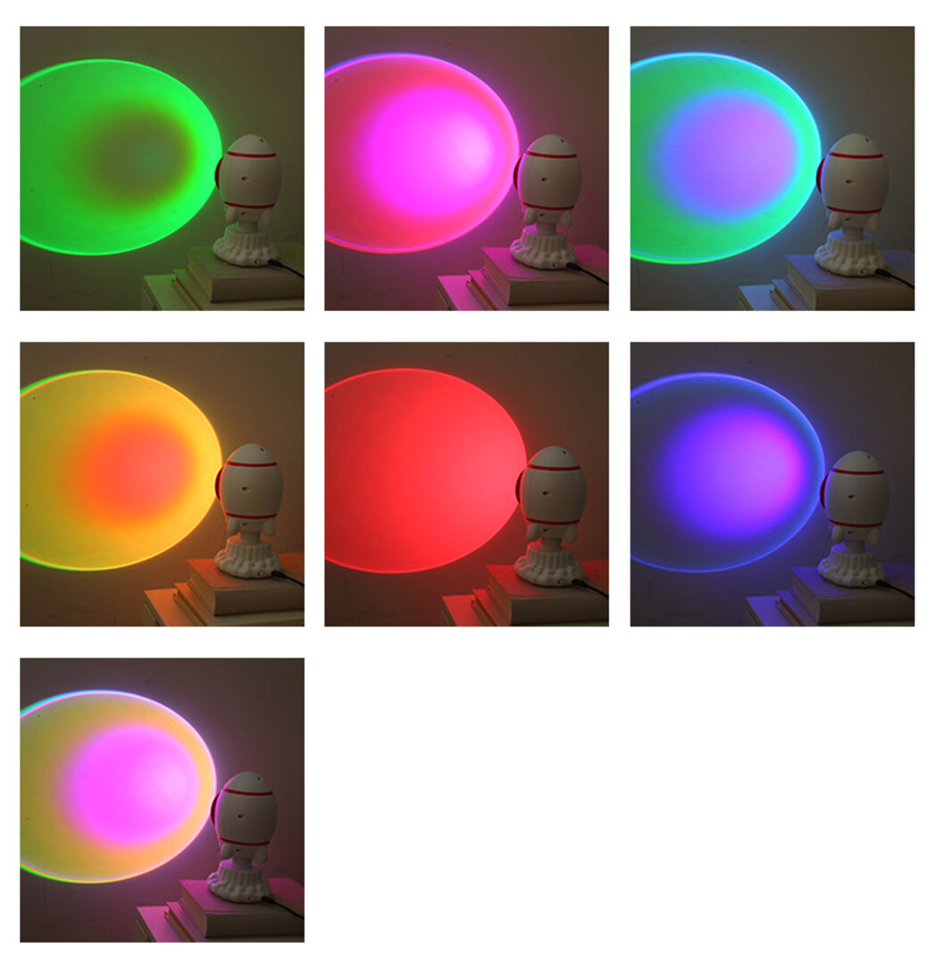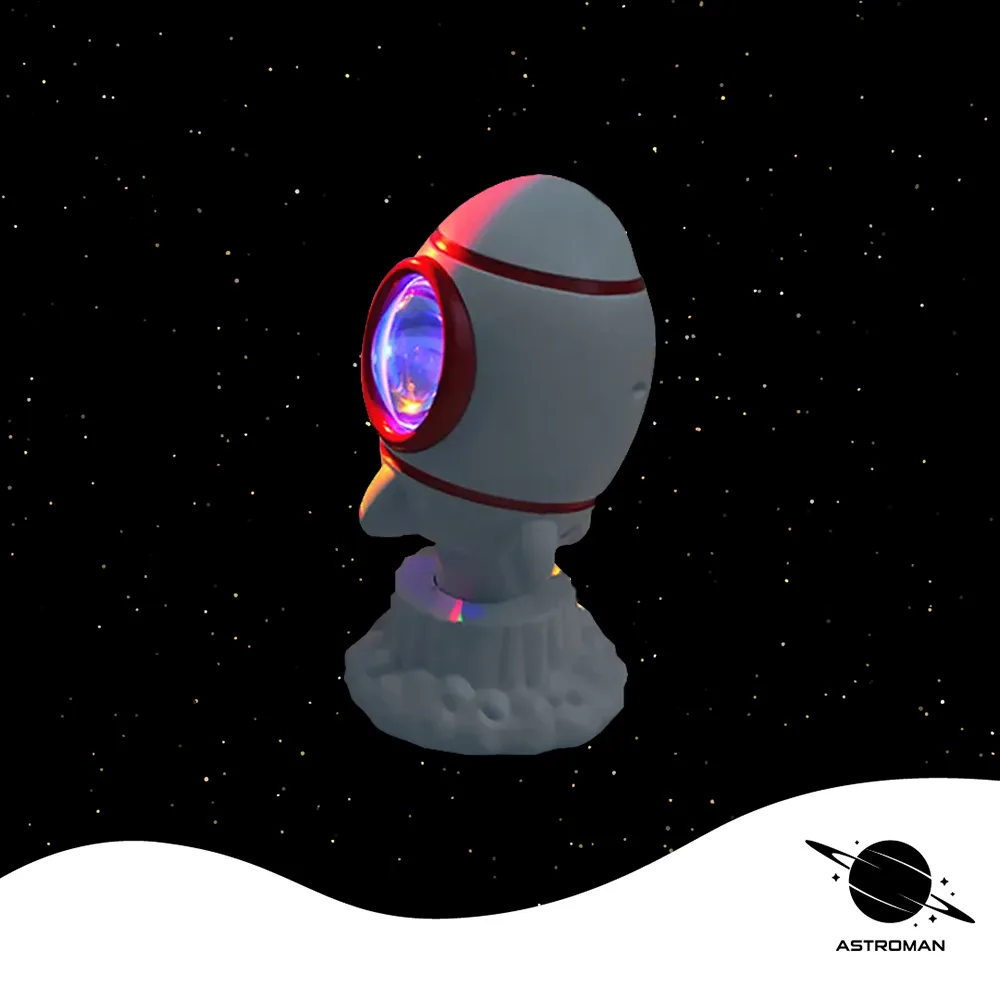 რაკეტის ფორმის ფერადი პროექტორი! 10 განსხვავებული ფერი, რომელიც ღილაკით ეცვლება.
