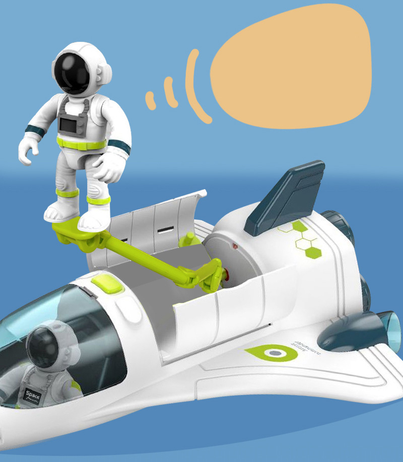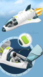 რაკეტას მოყვება პატარა კოსმონავტი, ღილაკზე თითის დაჭერით ანათებს და ხმებს გამოსცემს