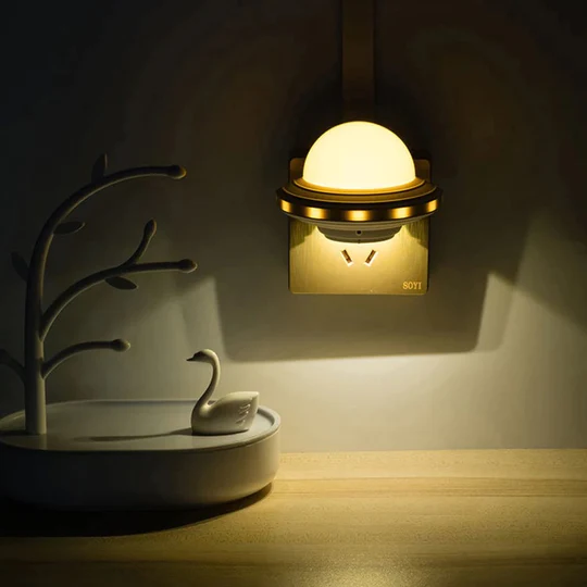 UFO ფორმის სანათი ერთდება დენის წყაროში, იმართება პულტით, აქვს ნათების 3 რეჟიმი