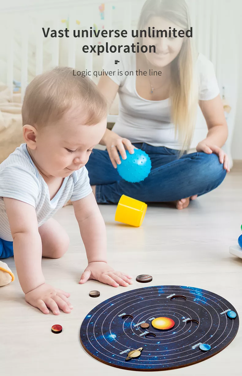 ეკოლოგიურად სუფთა, ხის ასაყობი დაფა მზის სისტემის თემით.ყველა პლანეტა, რომელიც მზის სისტემაში შედის გაუმარტივებს პატარებს პლანეტების დამახსოვრებას,პლანეტების შესაბამის ადგილზე ჩასმა კი განუვითარებს კოგნიტურ მეხსიერებას ბავშვებს!